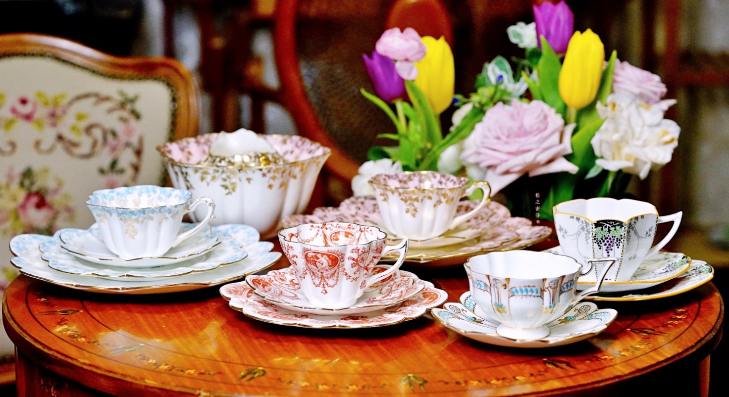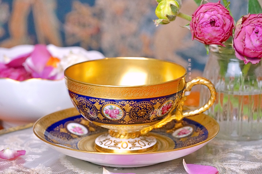 于是我开始试着寻找中古瓷器,来满足我对精致古典生活的定义,也由此,打开了一个新世界。此间,我注意到,这些有一定年代的茶杯与现代产品的不同之处:一个杯子往往都会搭配一个托碟,杯子的把手基本会有弧线的变化而非仅仅一个简单的弯曲、许多杯子会有底足,在细节上表现充分。我在这些老瓷器中沦陷了——大朵绽放的玫瑰花束、和谐自然的底配色、灿烂而不矫饰的镀金…… 我仿佛走进了一个梦幻的世界,想把它们都带回家。不同形状大小的各一套、不同色系的各一套、不同主题的各一套,有了茶杯,还要有茶壶、奶杯、糖罐,集齐了茶具自然也得搭配上餐盘、点心盘、托盘。由于年代久远,很多生产经典之作的瓷厂早已经停产了,想找到心仪的瓷器,需要自己慢慢淘货,并且经常需要至少几周的等待时间。但我对此并没有一丝的疲倦,反而乐在其中。