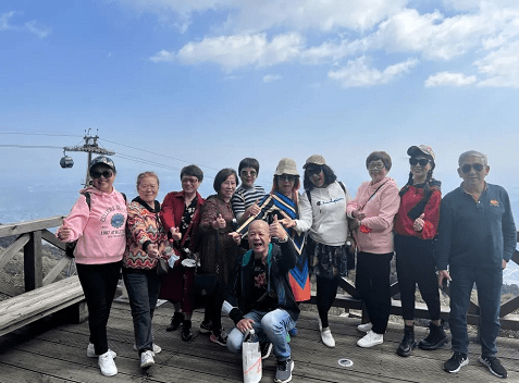 “天空之境在哪?怎么走?距离索道站多远?”这是考察团还没上缆车就开始询问工作人员的问题。作为景区的网红打卡点,天空之境距离上站索道口左侧仅150m,考察团也将它作为山上景点的第一站。