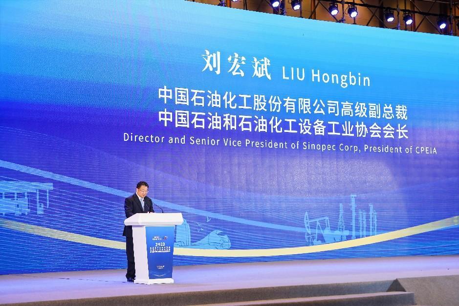 中国石化股份公司高级副总裁刘宏斌致辞,他说,中国石化作为国有重要骨干能源企业,深入贯彻新发展理念, 准确把握新发展阶段,服务构建新发展格局,坚决扛稳保障国家能源安全、引领我国石化工业高质量发展、担当国家战略科技力量的三大核心职责,积极构建“一基两翼三新”产业格局,全力打造世界领先洁净能源化工公司。立足当下、面向未来,中国石化愿与社会各界一道,携手共进、合作共赢,助力建设制造强国、质量强国、数字中国,为推进中国式现代化贡献智慧与力量。