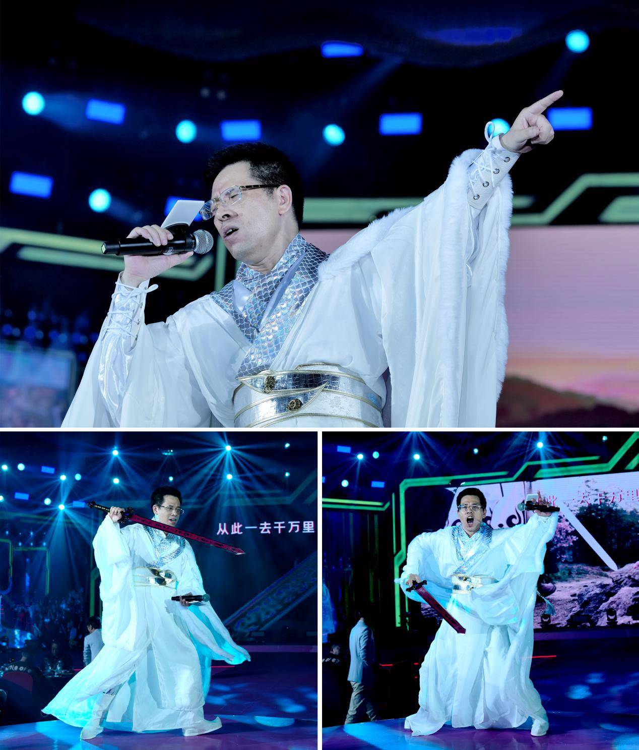《龙凤吟》、《弹剑而歌》巧妙融入昆曲,回味无穷,观众沉浸在音乐的海洋,感受音乐的力量,感受中华文化的魅力!何物纵横天地间,腾云驾雾是神龙,剑鸣铿锵,剑气浩荡,以中国旧传统“符号”,抒怀新时代精神。世界本是一个江湖,他的歌中透出剑气直冲云霄的英雄豪情,更有弹剑而歌笑傲江湖的人生智慧。