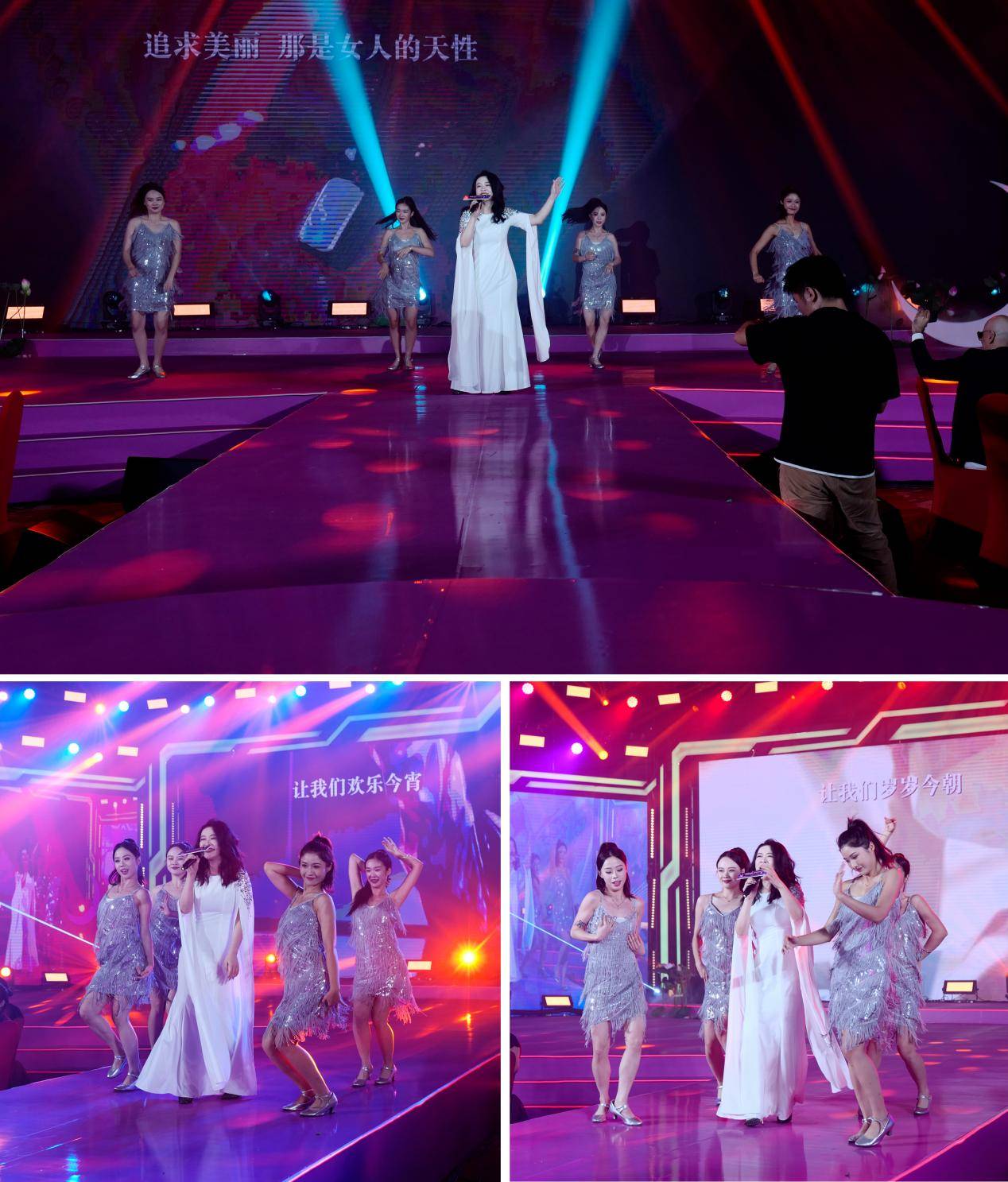 华语流行男歌手、著名音乐制作人,词曲创作人、八音琴道创始人陆昶旭大驾现场,倾情演唱中国风歌曲《旗袍韵》。淳朴的风格、优美的旋律、深情的演唱及浓郁的中国风配器,一股清流自然溢出。在悠然歌声中,百莲凯加盟商女神总裁们身着旗袍,徐徐走向舞台前方,婀娜多姿,风情万种,完美展示了女性魅力,歌声视觉形成一道中国韵味的风景线,充满东方文化情怀,让观众惊叹连连。