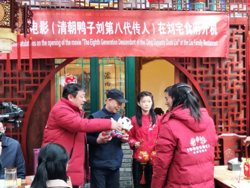 电影《清朝鸭子刘第八代传人》由中华春节符号全球征集活动组委会、广东经贸文化促进会、中实会祥(北京)春节文化传播有限公司、北京刘宅食府联合策划,丝路环球(北京)电影电视剧制作有限公司摄制,总监制:刘祥法、岳红侠,总策划:赵刚,艺术顾问:郝光,演员:刘江云、杨玉萍、刘赢、刘禹含、导演:张涛,摄影师:邵辉,美术师:闫舒棉,总导演助理:李芊芊(兼英文翻译)总导演:李悦(全国十佳导演)。
